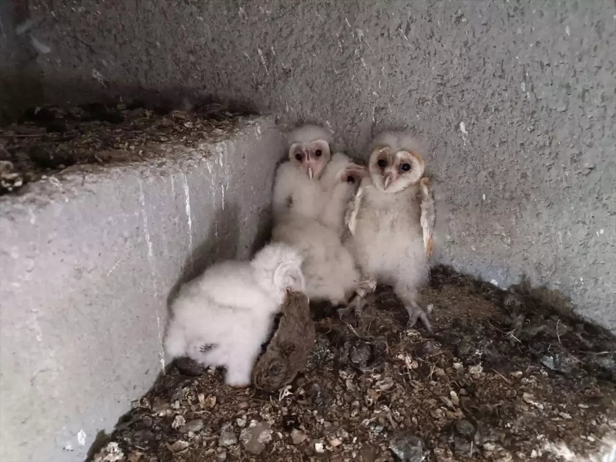 Güzelyurt Camisi’nin minaresine yuva yapan peçeli baykuşun yavrusu bulunduğu yerden düştü.