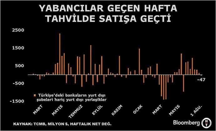 Türkiye Cumhuriyet Merkez Bankası (TCMB) verilerine göre, yurt dışında yerleşik kişiler piyasa fiyatı ve kur hareketlerinden arındırılmış verilerle 1 Ağustos haftasında 135,5 milyon dolar net hisse alımı yaptı.