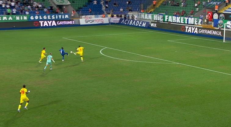 Karşılaşmanın 16. dakikasında Çaykur Rizespor atağında Göztepe kalecisi Lis topu uzaklaştırmak isterken kalesini boşalttı, Lis’den seken top Ali Sowe’un önünde kaldı ancak son anda savunmada Heilton araya girerek tehlikeyi önledi. Pozisyonun devamında Çaykur Rizespor’da Ibrahim Olawoyin sağ kanattan etkili bir orta yaptı. Ali Sowe arka direkte kafayı vurdu ancak top çerçeveyi bulmadı.