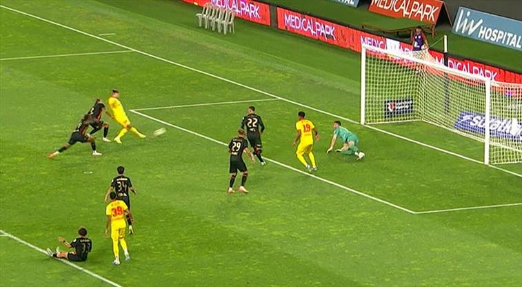 Göztepe 27. dakikada gole çok yaklaştı. Janderson’un uzak mesafeden çektiği sert şutta kaleci Ivo Grbic çeldi. Dönen topla ceza sahası içinde buluşan Arda Kurtulan’ın vuruşunda meşin yuvarlak yandan auta çıktı.