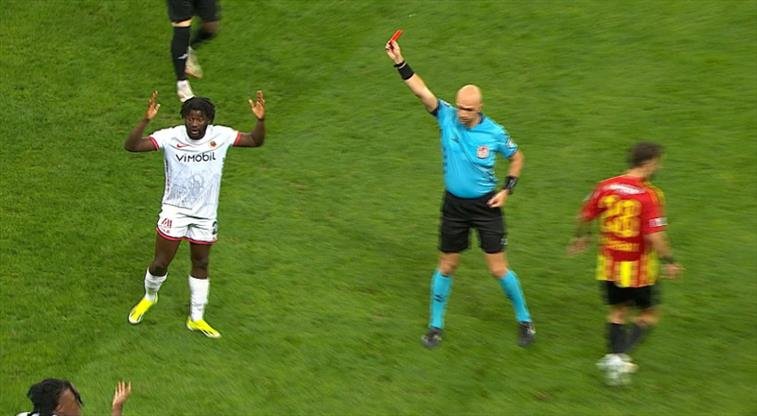 Gençlerbirliği’de Sekou Koita 50. dakikada rakibine yaptığı hareket sonrası kırmızı kart gördü.