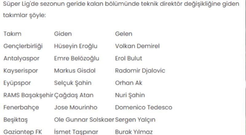 Süper Lig’de sezonun geride kalan bölümünde Fenerbahçe, Beşiktaş, RAMS Başakşehir, Gaziantep FK, ikas Eyüpspor, Zecorner Kayserispor, Hesap.com Antalyaspor ve Gençlerbirliği, alınan kötü sonuçların ardından teknik ekipleriyle yollarını ayırma kararı aldı.