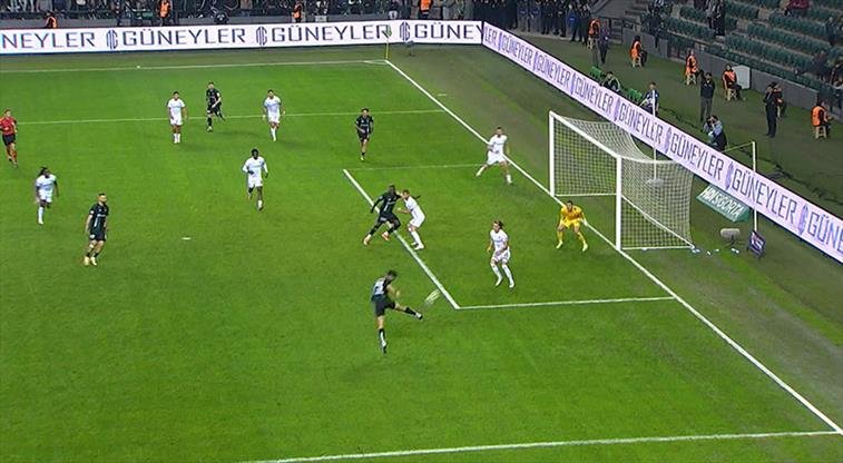 69. dakikada Kocaelispor’da arka direkte topla buluşan Tayfur Bingöl’ün yakın mesafeden sert vuruşunda meşin yuvarlak az farkla üstten auta gitti.