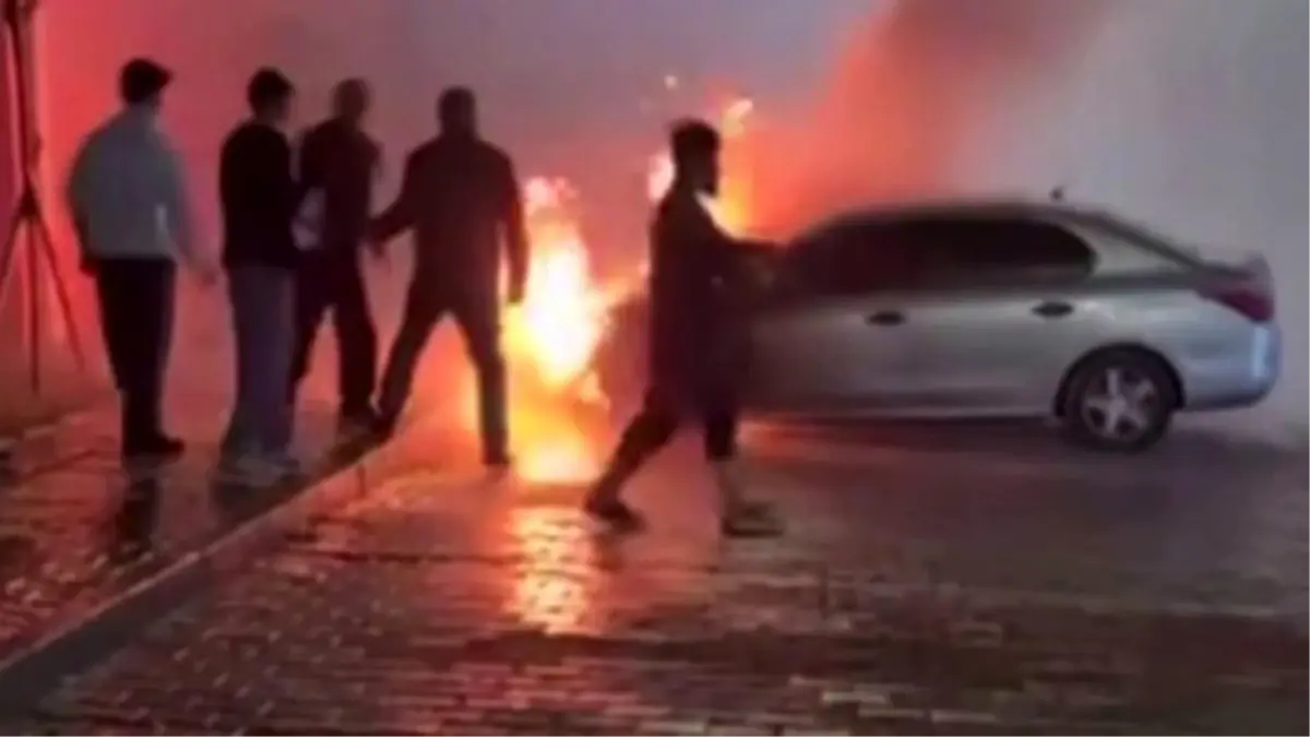 Gaziantep’te park halindeki otomobil alev alev yandı