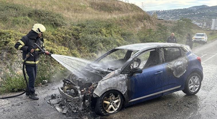 Samsunsporlu Anthony Musaba’nın kiraladığı araç, motor kısmından alev aldı. Araç kullanılamaz hale gelirken, Musaba herhangi bir yara almadan kurtuldu.
