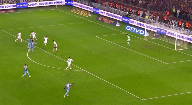 Derbide ilk tehlikeli atak Trabzonspor’dan! 16. dakikada Mustafa Eskihellaç’ın ceza sahası dışından şutunda top az farkla dışarı çıktı.