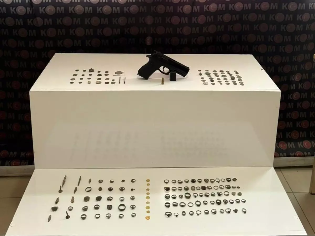 İkinci operasyonu ise Elbistan ilçesinde KOM ekipleri yaptı. Tarihi eser kaçaklığıyla ilgili gerçekleştirilen operasyonda 1 şüpheli yakalandı, 66 adet sikke, 100 adet tarihi eser niteliği taşıyan obje, 1 adet tabanca, 1 adet boş şarjör ve 1 adet dolu fişek ele geçirildi. Şüpheli hakkında ‘Kültür ve Tabiat Varlıklarını Koruma Kanunu’ ile ‘Ateşli Silahlar ve Bıçaklar ile Diğer Aletler Hakkında Kanun’ kapsamında adli işlem başlatıldı. – KAHRAMANMARAŞ